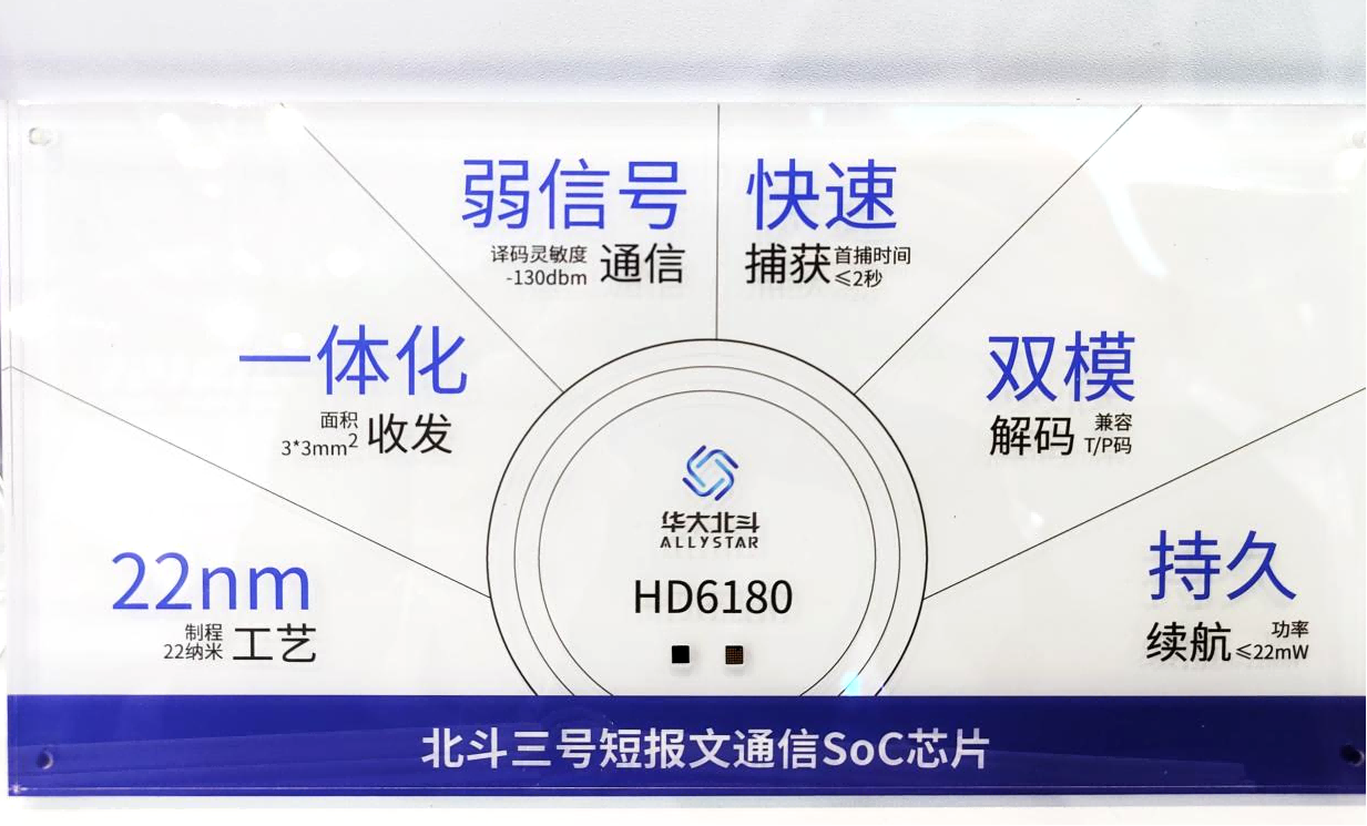 华大北斗全新一代北斗三号短报文通信SoC芯片H6180,是拥有完全自主知识产权的国产基带射频一体化芯片。以“推动北斗短报文大众化普及”为核心,HD6180实现了工艺、芯片架构、弱信号通信、卫星捕获、解码能力与功耗的全维度跃升,堪称业内性能最先进、尺寸最小的北斗三号短报文通信SoC芯片,不仅为应急救援、海洋渔业、电力数据采集等专业领域提供更优芯片级解决方案,更成为智能手机、智能手表等亿级大众设备的基础芯片支撑。在带动百亿规模上下游产业发展的同时,以北斗短报文技术守护千家万户,加速北斗短报文从专业领域走向大众生活。